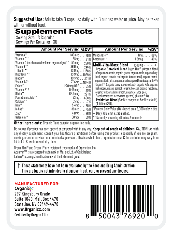 Organixx is a leader in the world of vitamin bioavailability because their Clean Sourced Multivitamin only uses organic, plant-based nutrition. It's filler-free, additive- and artificial-color-free, and it's also 3rd-party purity tested and verified.