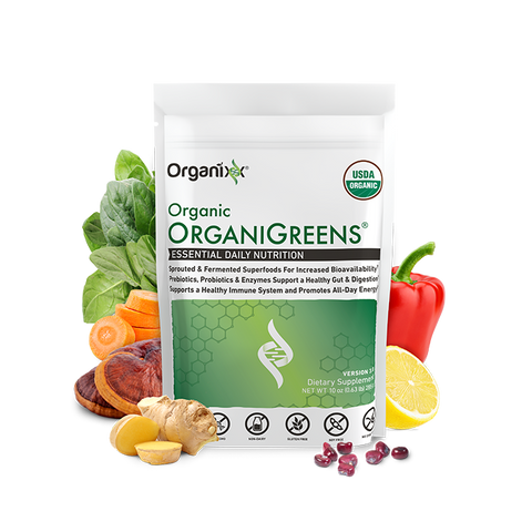 Speaking of enzymes and probiotics, adding sprouted and fermented foods to your daily regimen ensures optimal enzymatic and probiotic delivery for maintaining gut health. These can be consumed as foods in your diet, or from a clean, high-quality greens powder supplement like Organixx OrganiGreens.