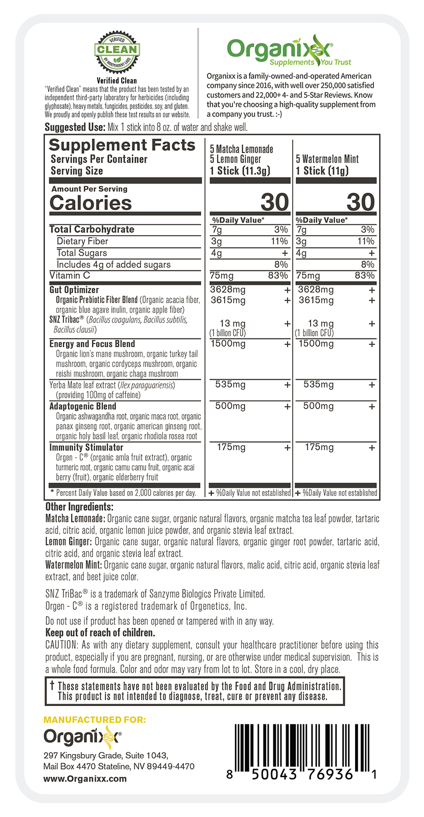 - Includes 3 refreshing flavors: Matcha Lemonade, Lemon Ginger, and Watermelon Mint (5 each)
